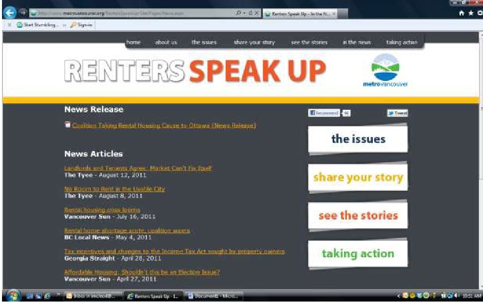 In 2010, Metro Vancouver orchestrated the creation of a lobby group to push for more rental housing, pulling together tenants, non-profit housing advocates and developers into a Rental Housing Supply Coalition. This is an unorthodox strategy for a local government, but Metro has few troops of its own on the ground. The primary target is the Government of Canada; during last spring’s federal election campaign, the Coalition called on federal party leaders to take a stand on rental housing.