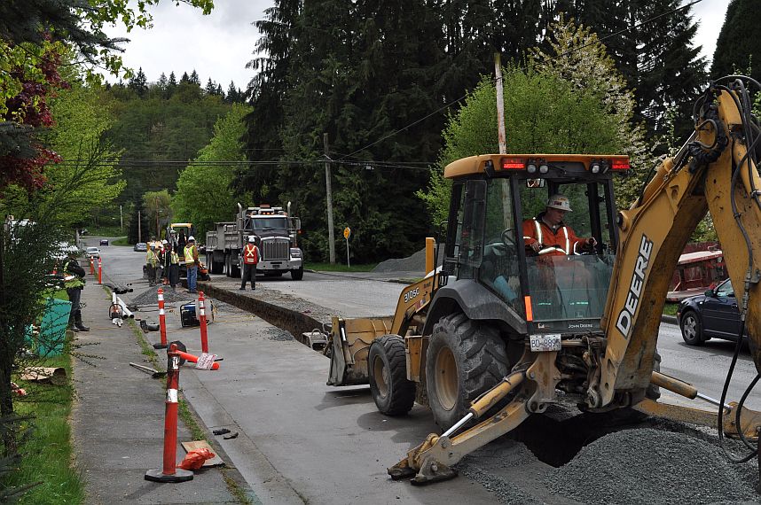 During the recent panic around transportation funding in Metro Vancouver, the authorities assured us that construction of the long-awaited Evergreen rapid transit line will proceed.  Preliminary work — street widenings, electrical ducts — is now underway, and a contractor is to be selected soon for principal construction,  scheduled to begin in autumn 2012.