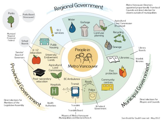 A few days ago, our friends at the South Fraser Blog published an infographic that captures some of the complexity of our system of government in the Lower Mainland.