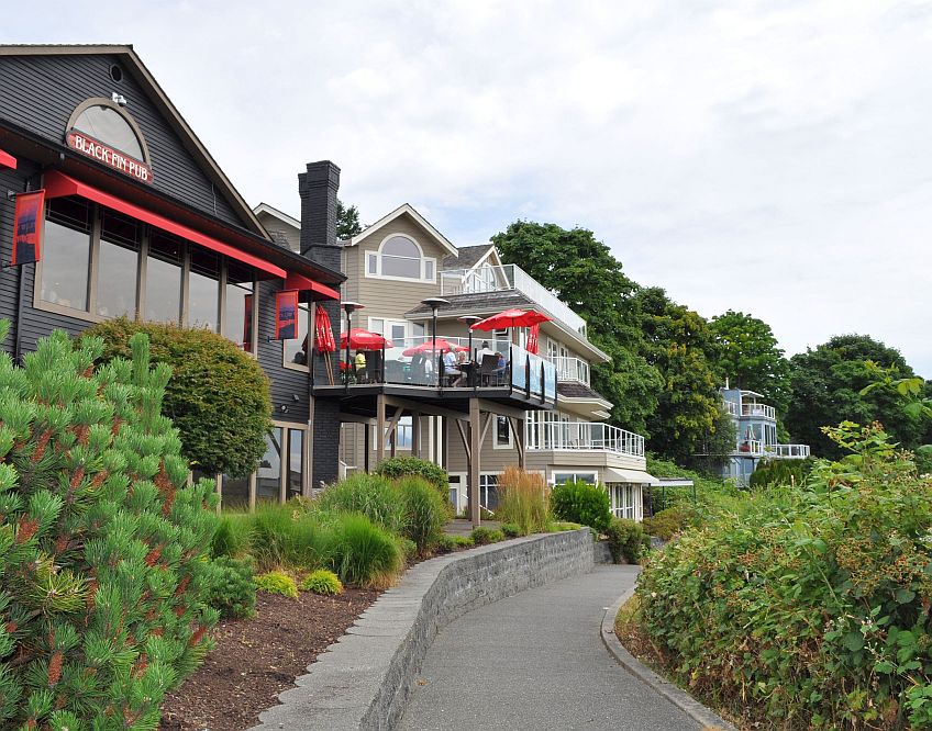 Settlement in Comox dates from the 1860s, but little heritage architecture remains. The Lorne pub and hotel, which was B.C.’s oldest inn, burned to the ground in early 2011. The dominant layer of commercial architecture mixes the one- and two-story styles that are common across B.C.; the planners are now overlaying this with a “marine theme” that produces sometimes tasteful and sometimes gaudy results . About 1980, the Town