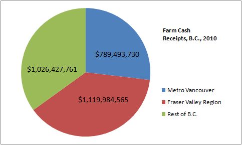 In fact, farms in Fraseropolis collect 65 per cent of farm cash receipts in B.C. The provincial total is reported at $2.936 billion for 2010. This is from a bulletin on agriculture recently posted by the Metro Vancouver authority, based on the 2011 federal census.