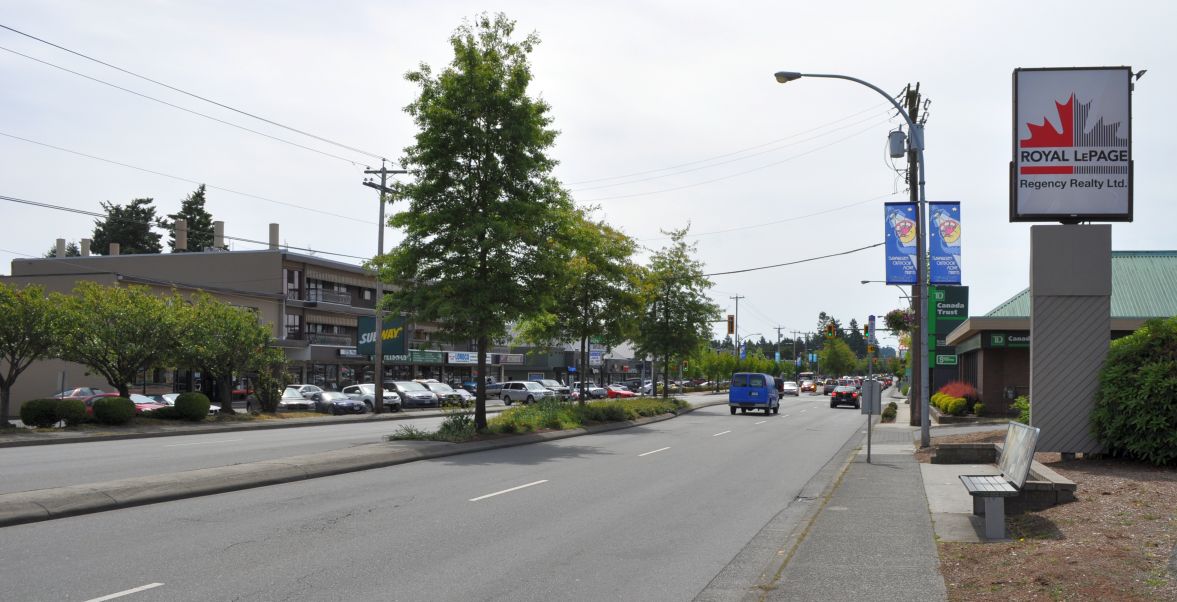 The town centre was bustling on the Saturday when I visited Tsawwassen with Robert Smarz,  my friend from Surrey who is restless with changes in his own neighbourhood. Bob noticed the lack of big box stores and chain stores, and the focus on local business ownership. I noticed the apparent prosperity — there are few commercial vacancies — but also the flawed design. The city’s official plan says the objective is to achieve a “small town” feel, but this doesn’t tell us much. The business zones in British Columbia’s small towns are often grubby and disorganized. A key challenge for Tsawwassen’s central area is the width and traffic speed on the high street; it’s as wide as a regional highway, even though it leads only to two or three neighbourhoods and a small U.S. village at the end of the peninsula.  Virtually every commercial property in Tsawwassen is part of a strip mall, or otherwise fronted by a parking lot. Commercial and residential uses are almost entirely segregated. Local government has missed an opportunity; instead of a village that invites walking, we are left with disconnected plazas. As Mr. Smarz said, they could have made it cuter.