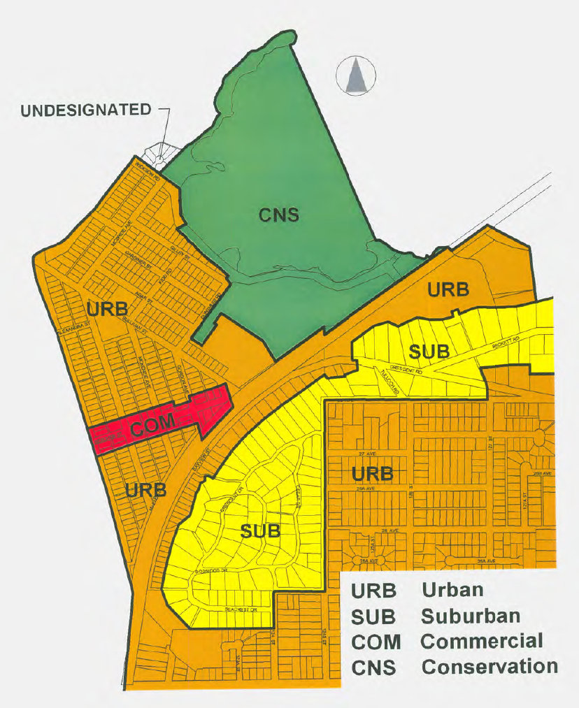 Judging from a 1999 neighbourhood plan, the population of the Crescent Beach community (as defined by local government) is likely a bit less than 1,000. Densification here takes the form of a few coach houses built at the back of large residential lots. The plan proposed the creation of dedicated seniors’ housing to let long-time residents “age in place”, but there’s no sign this idea was ever adopted.