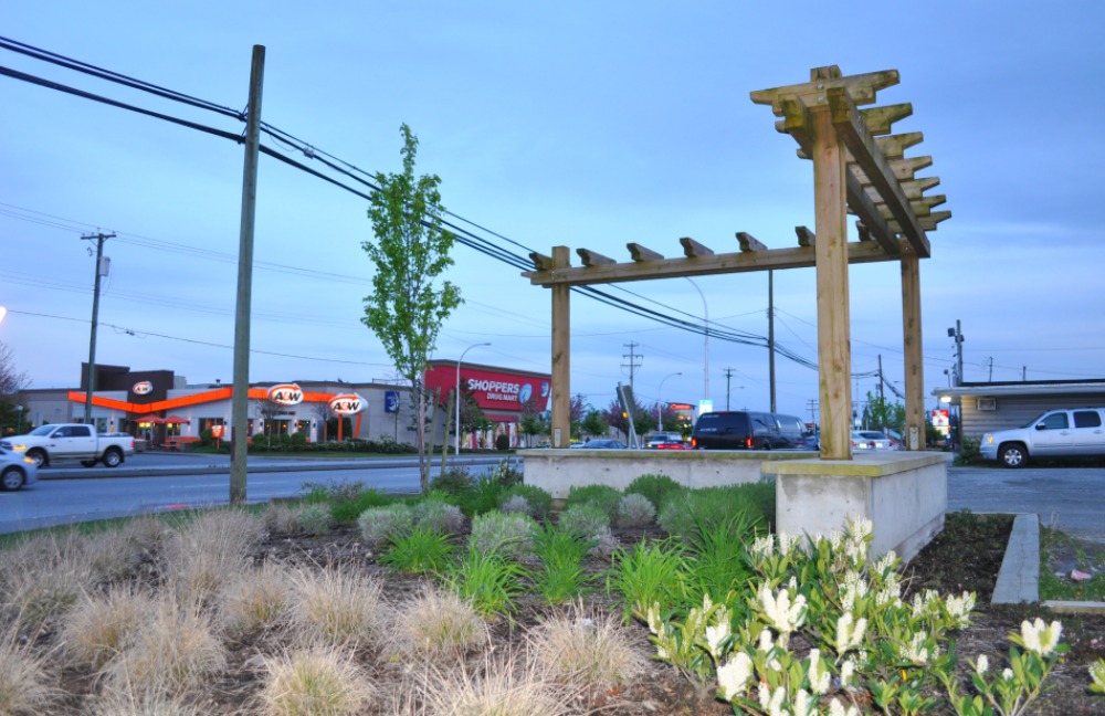 The City website states that E.J. Newton settled near King George Highway in 1886. For a time his property sat alone, surrounded by forest. The site is now part of the Newton Town Centre, a designation that is plain from the overhead signs but largely overlooked in the City government’s online documents. The King George at 72 Avenue corner is also the southern terminus for the proposed Surrey light rail system.