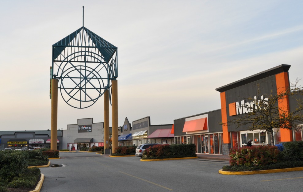 lives half an hour away by foot. We approached from the south along King George Boulevard, formerly King George Highway. It’s no longer a primary provincial truck route, but it’s still a noisy river of steel. Some of the old tourist motels hang on, but the the strip is increasingly dominated by big retail stores and associated parking lots. The one-time Surrey Public Market, a home for micro-retailers that thrived and then failed in the 1990s, is now a fenced-off, crumbling hulk with a grass-grown parking lot.