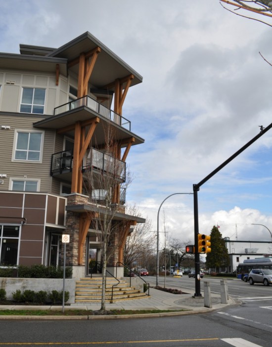 An apartment/commercial complex at Harris Road and Ford Road in Pitt Meadows. This was built in about 2010 on the site of a failed shopping plaza