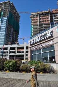 After pausing at the market building we continued west. The western end of the Quayside neighbourhood continues to evolve, and now features a Venetian-style square adjacent to a second riverside square with a fountain. Mr. Smarz, as always, was considering the benefits of moving to this area. “It looks like you could get your own pond in New Westminster Quay,” he said.