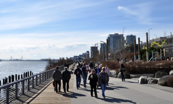 Pathways are being steadily extended east and west. On a recent sunny Saturday, much of the 2.5 kilometres of pathway from the SkyTrain bridge to Rialto Court was busy with pedestrian traffic.