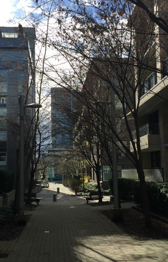 Crossing into Southeast False Creek, Nathan noted that a few of the streets have a European feel. I said it’s because the automobile has been demoted; the pedestrian and the cyclist have achieved a sort of equality with the driver, although some drivers are clearly unhappy with this notion.